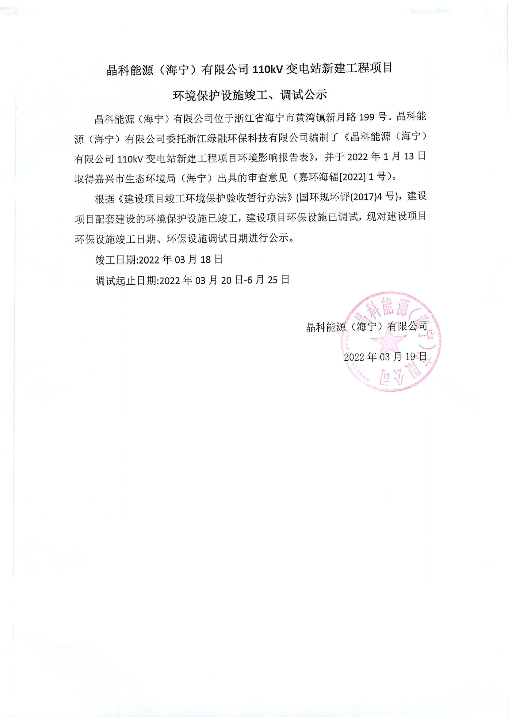 項(xiàng)目名稱:晶科能源(海寧)有限公司110kV 變電站新建工程項(xiàng)目