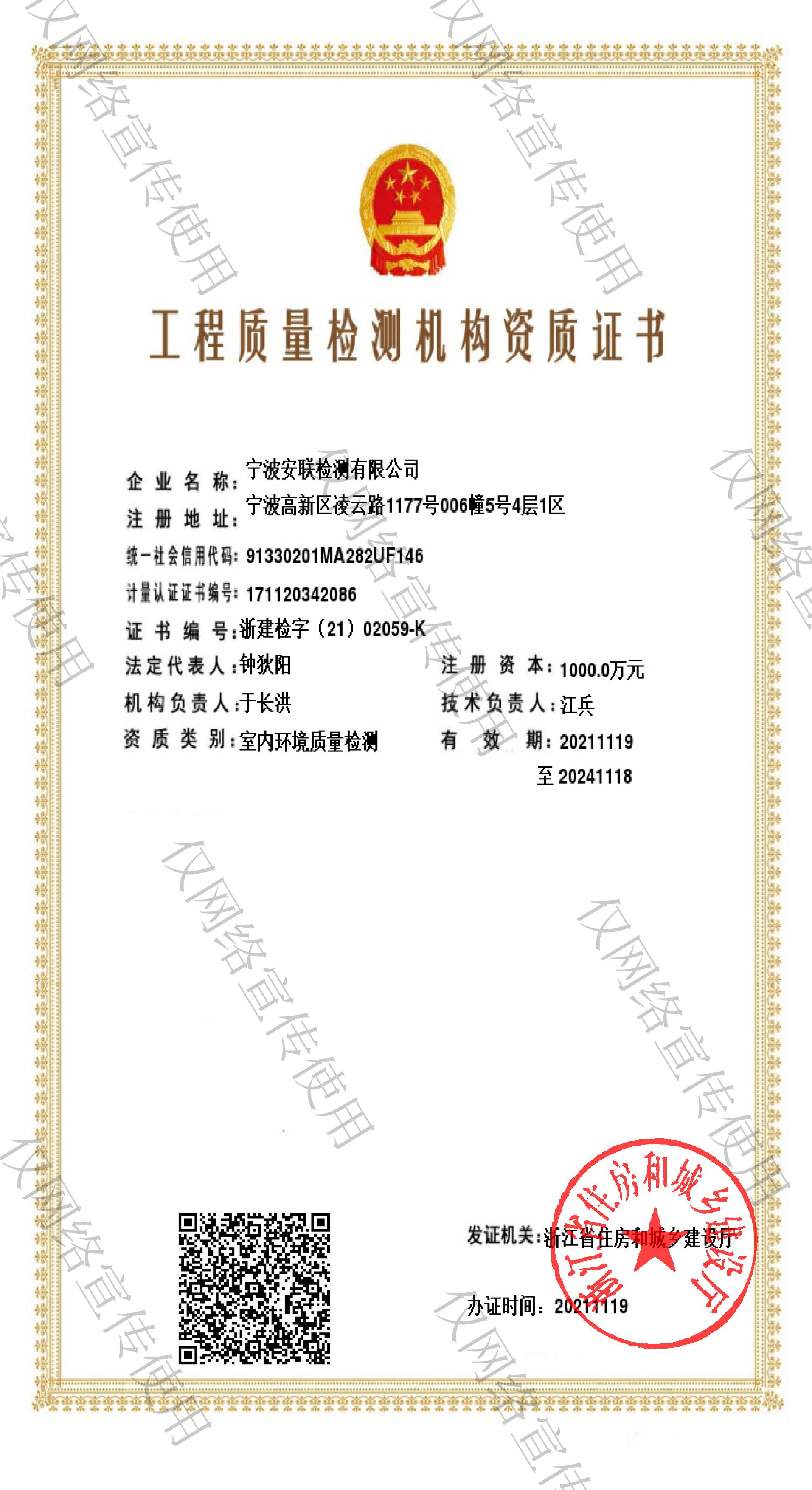 安聯憑借先進的檢測設備和專業的技術團隊,獲得了室內環境質量檢測資質,可為室內環境質量檢測提供相應的數據支持。